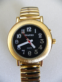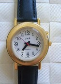 Montre parlante femme, dorée, fond noir, .….…………………… sans alarme